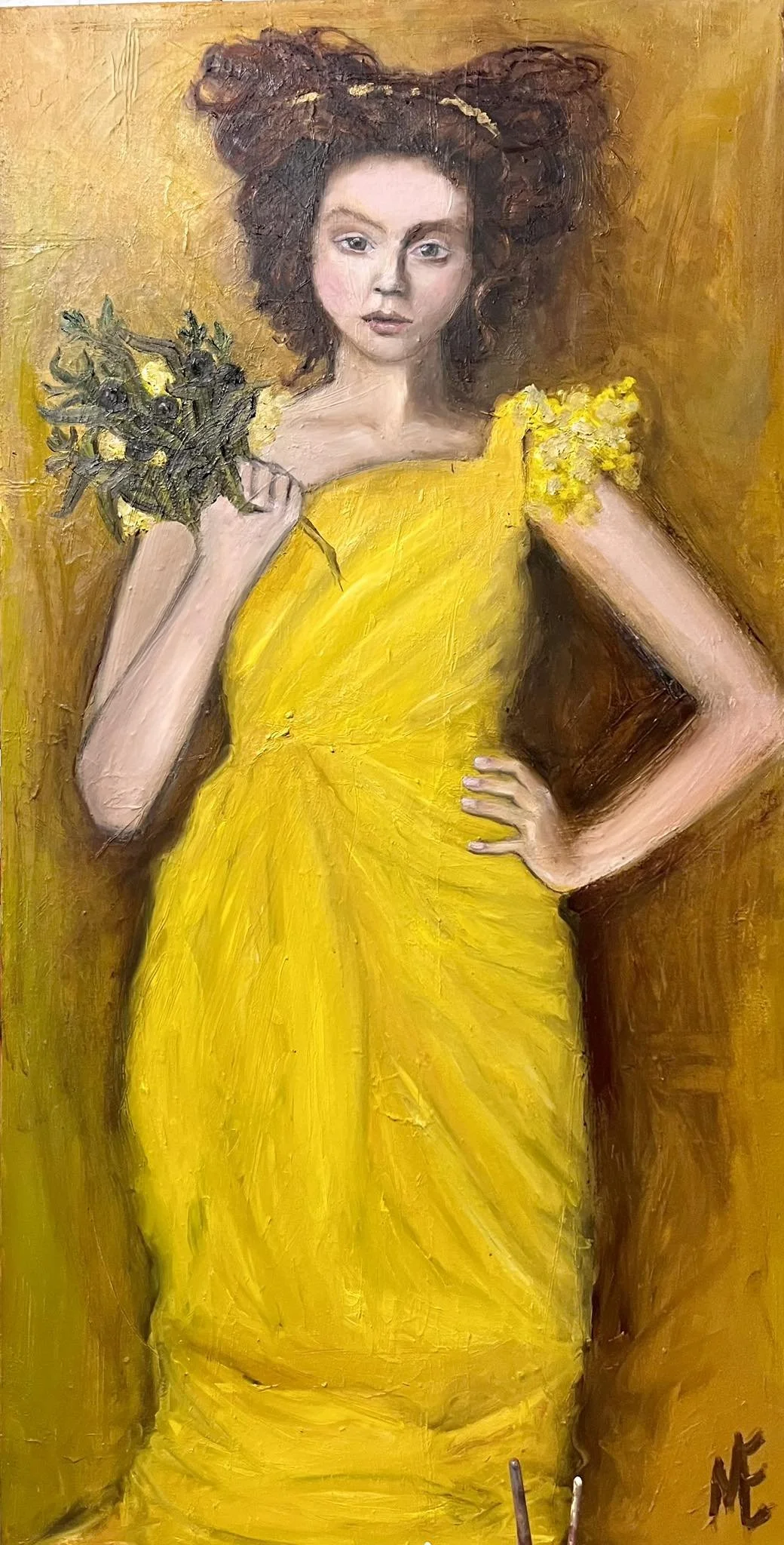 The painting submitted is Ruby, Getting the job done!, Lady #72, oil on canvas, 2’x4’